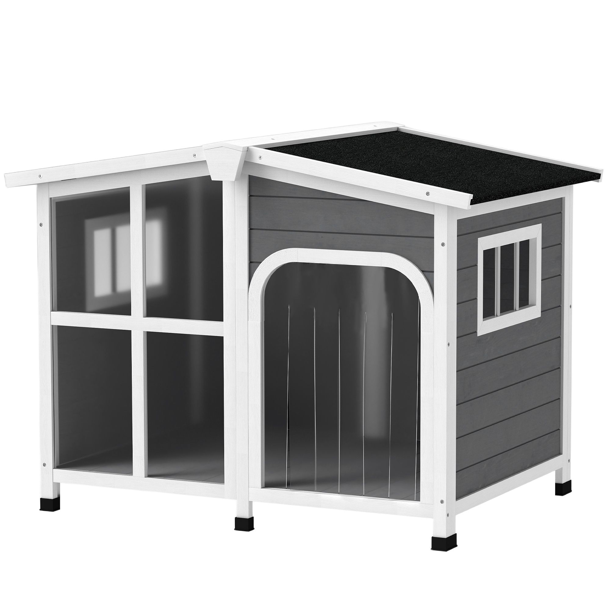 PawHut Cabin-Style Wooden Dog House for Large Dogs with Openable Roof & Giant Window, Dark Gray PawHut Cabin-Style Wooden Dog House for Large Dogs with Openable Roof & Giant Window, Dark Gray PawHut Cabin-Style Wooden Dog House for Large Dogs with Openable Roof & Giant Window, Dark Gray