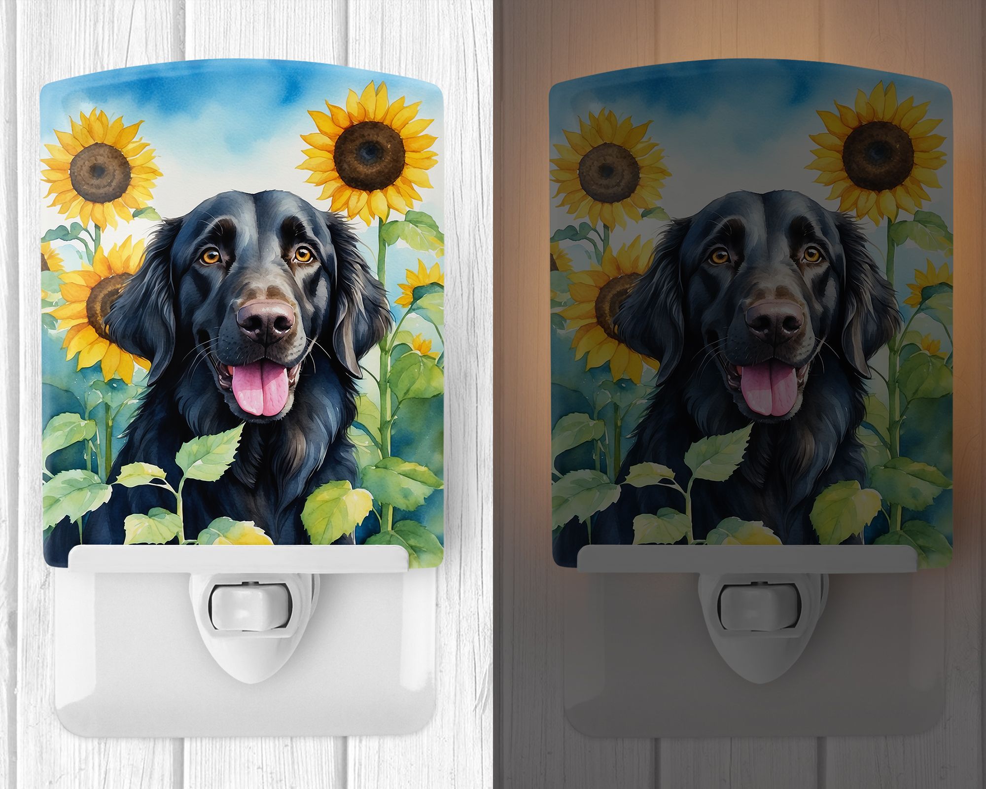 Home > NEW Flat-Coated Retriever in Sunflowers Ceramic Night Light Compact, UL-Certified, Ideal for Bedroom, Bathroom, Nursery, Hallway, Kitchen, 6x4x3